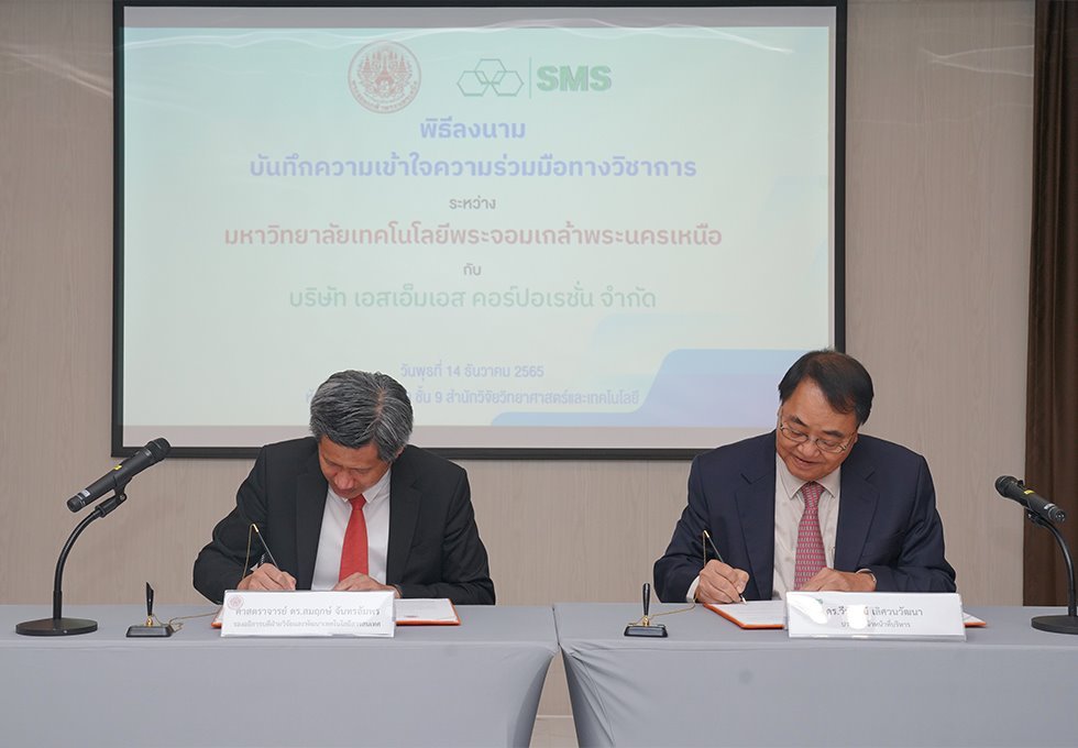 SMS Corporation and King Mongkut’s University of Technology North Bangkok (KMUTNB) agreed to build cooperation by signing a memorandum of understanding (MOU) on Bioplastic development from Tapioca innovation. The MOU signing took place at the Science & Technology Research Institute on December 14th.